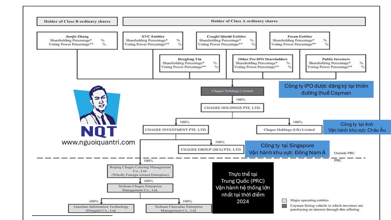 Sơ đồ Holdings và cấu trúc cổ phần hoá của CHAGEE trong thương vụ IPO 5.1 tỷ USD trên sàn NASDAQ