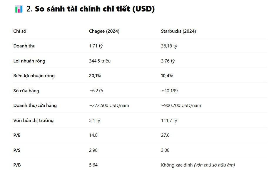 4. So sánh các chỉ số tài chính của Chagee và Starbucks